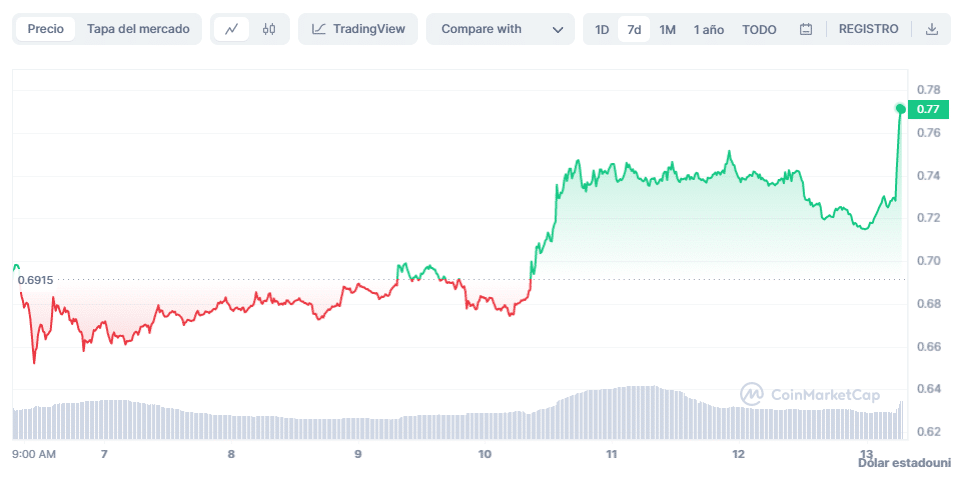 La altcoin pasó de cotizarse en USD 0,67 a USD 0,77, al momento de la redacción de este artículo. MATIC ocupa ahora el puesto 11 de criptomonedas por capitalización de mercado, de acuerdo a datos de CoinMarketCap.