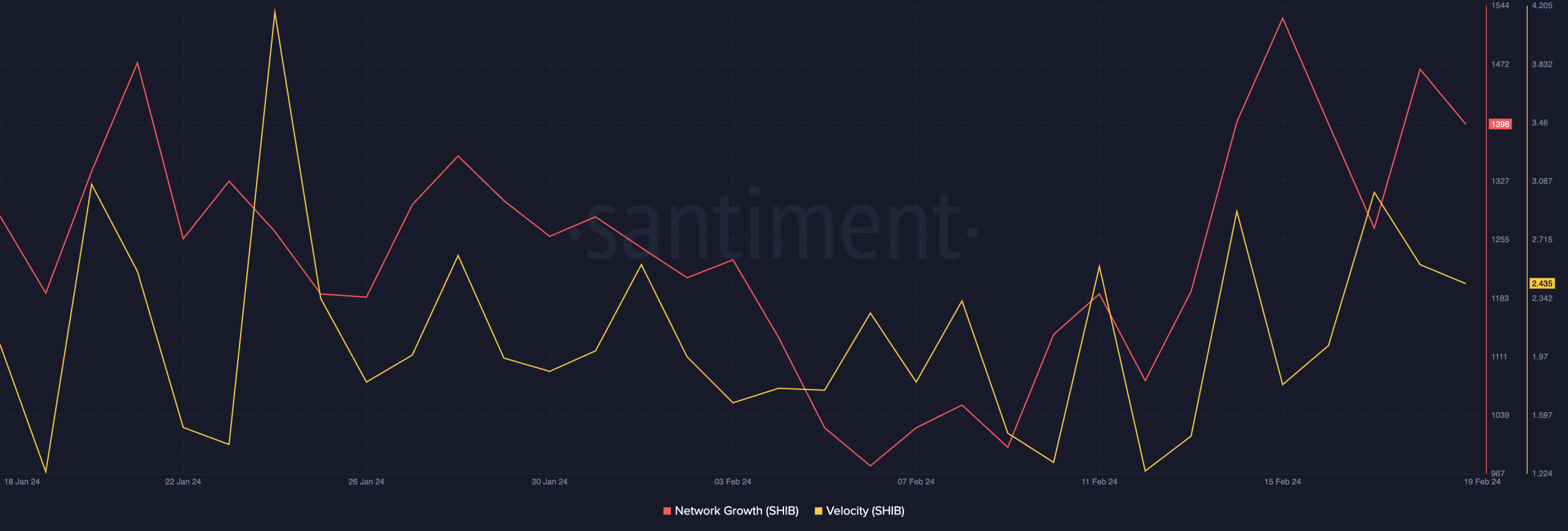 Un sentimiento ponderado decreciente sugirió que los comentarios negativos sobre $SHIB superaban en número a los positivos al momento de escribir este artículo.