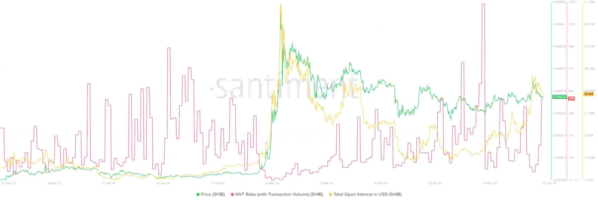 Finbold obtuvo datos de Santiment que muestran un aumento en el ratio NVT (Network Value to Transactions) de $SHIB, lo que indica que el activo podría estar sobrevaluado y sugiere una posible caída en su precio.