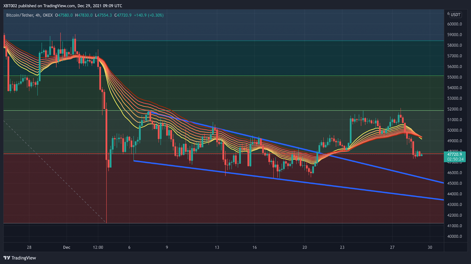 El precio de BTC actualmente está tratando de consolidarse en torno a un nivel clave de retroceso de Fibonacci después de venderse con fuerza ayer. A menos que los compradores den un paso adelante en el plazo inmediato, BTCUSDT podría volver a su cuña descendente anterior, o más baja, en un apretón prolongado.
