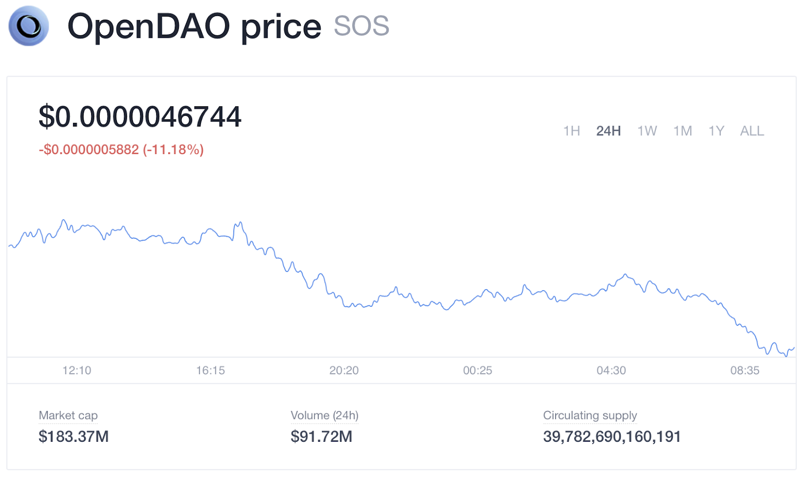 - SOS / USDT -10.47%
