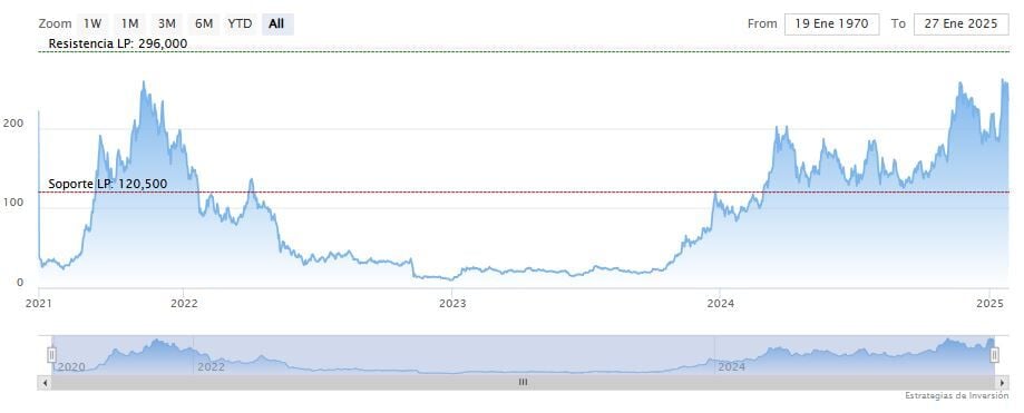 La resistencia a mediano y largo plazo se encuentra en los 296 dólares. Mientras, los indicadores de Ei se muestran mixtos.