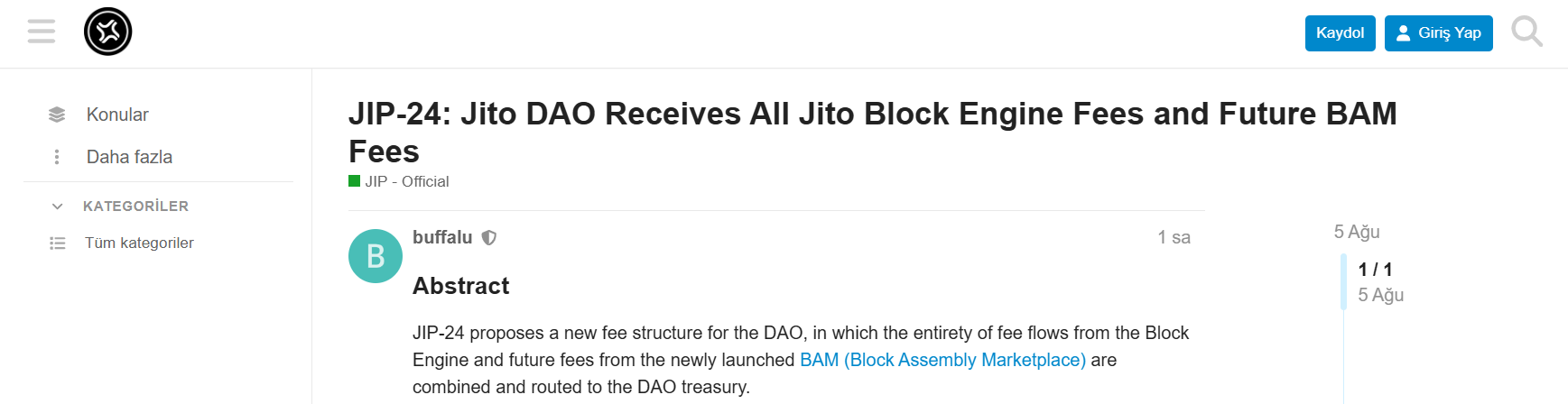 - Jito Labs propone JIP-24 para dirigir tarifas directamente al tesoro de DAO.