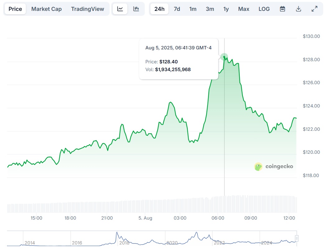 - El precio de LTC se disparó a máximos de febrero sobre los USD $127.