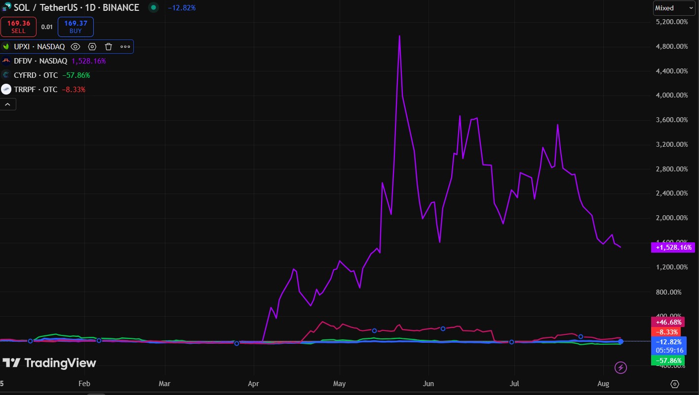Upexi, por su parte, también ha visto beneficios por su apuesta en SOL, con incrementos más moderados, del 44,5% en sus acciones desde enero.