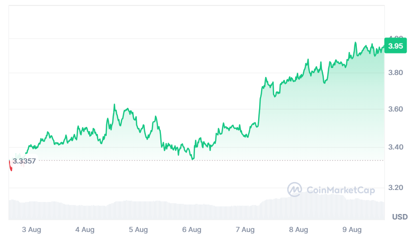 El anuncio representa un hito para la blockchain de Sui y para los tenedores de su token, SUI. La noticia también ha contribuido al desempeño positivo del activo, cuyo precio se mantiene cerca de los $4 al momento de redactar.