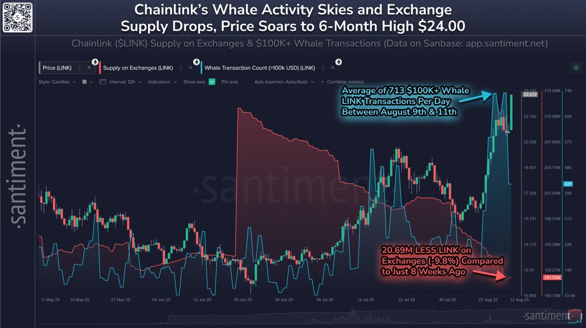 Chainlink (LINK) registró un hito significativo ya que su precio superó los 24 dólares, marcando su nivel más alto en siete meses.