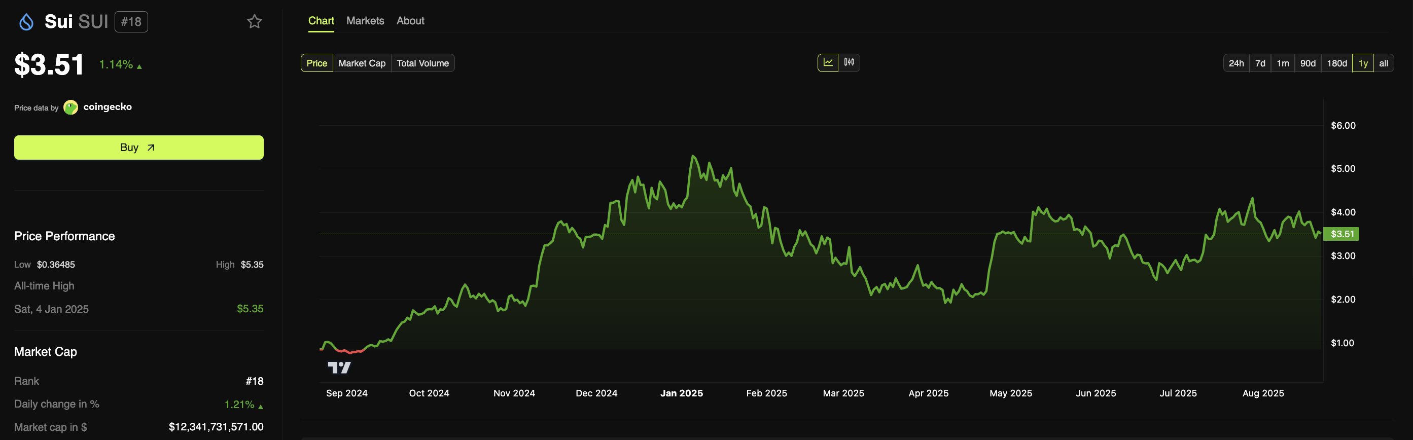 Sin embargo, el precio de SUI sigue un 34% por debajo de su máximo histórico. El precio se negociaba a 3.51 dólares al momento de la publicación, con un aumento del 1% en las últimas 24 horas.