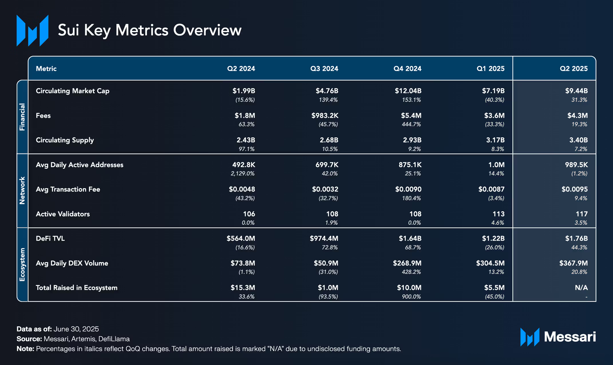 Según el último informe de Messari, el segundo trimestre de 2025 marcó una serie de nuevos hitos para Sui Network.