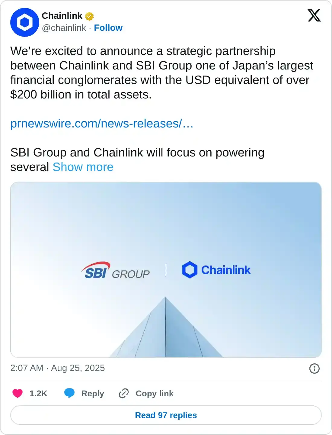 Chainlink y SBI Group han entrado en una nueva asociación, tras la exitosa entrega de una solución automatizada de administración de fondos y agencia de transferencia para el Proyecto Guardian de la Autoridad Monetaria de Singapur (MAS), junto con UBS Asset Management.