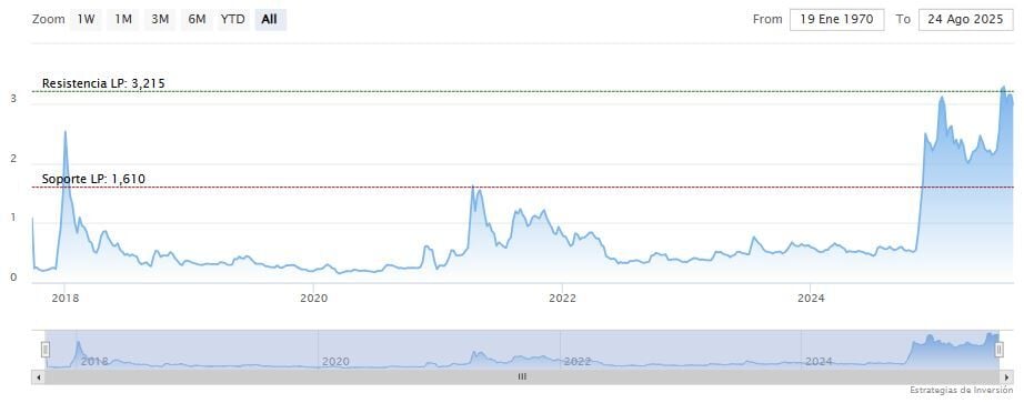 El soporte a mediano plazo se encuentra en los 1.72 dólares. Mientras, los indicadores de Ei se muestran mixtos.