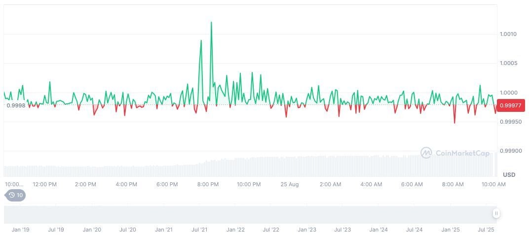 Al 25 de agosto de 2025, USDC cotizaba a 1 dólar con una capitalización de mercado de 67.380 millones de dólares. Con una posición dominante del mercado del 1.74%, su volumen de negociación en aumentó un 122.66%, alcanzando un total de 22.870 millones de dólares. Los precios se mantuvieron estables, registrando pequeñas fluctuaciones en los últimos 90 días, según CoinMarketCap.