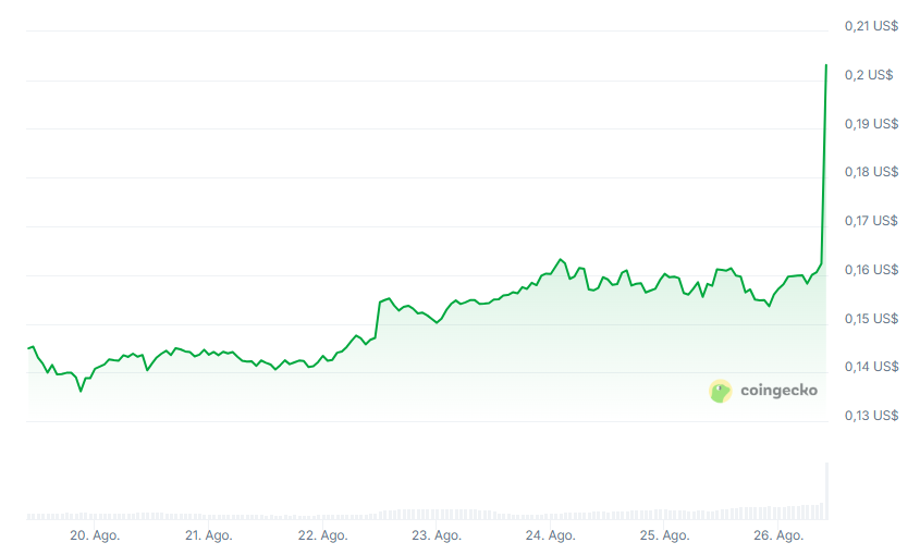 El precio de la criptomoneda cronos (CRO) tiene una subida cercana al 30% en la última hora. La razón principal de este movimiento es que la compañía Trump Media (operadora de la red social Truth Social entre otras plataformas) firmó un acuerdo de cooperación mutua con el exchange Crypto.com, que es el emisor de CRO.