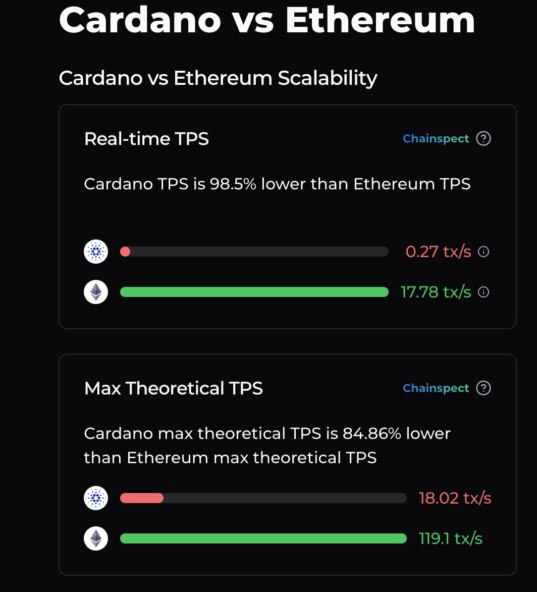 Escalabilidad de Cardano vs Ethereum. Fuente: Chainspect