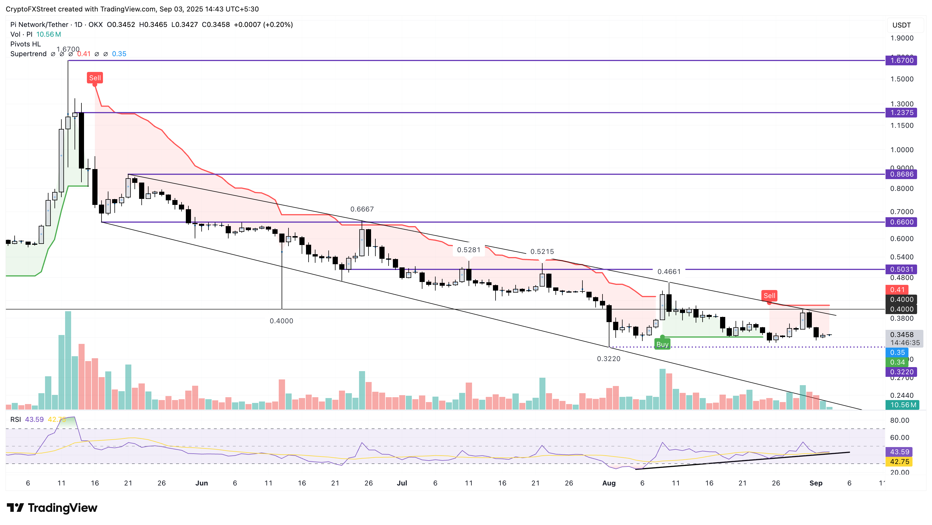 Pi Network se mantiene por encima de 0.3400$, asegurando las ganancias del martes. El mayor proyecto de criptomonedas basado en KYC sigue un camino de menor resistencia a la baja, arriesgando el soporte de 0.3220$, marcado por el mínimo histórico del 1 de agosto.