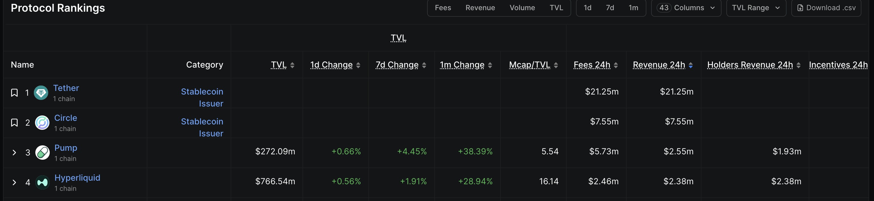 Las monedas meme basadas en el ecosistema de Solana están calentándose, con Pump.fun (PUMP) convirtiéndose en el protocolo generador de ingresos más alto en el mercado de criptomonedas, ahora solo detrás de emisores de stablecoins como Tether y Circle, respaldado por su nuevo modelo de comisiones para creadores. Los nuevos tokens de la Biblioteca de Programas de Solana (SPL) creados en Solana (SOL), junto con el aumento de liquidez proporcionado por la stablecoin USDC de Circle, podrían añadir combustible a la creciente demanda de monedas meme basadas en Solana.