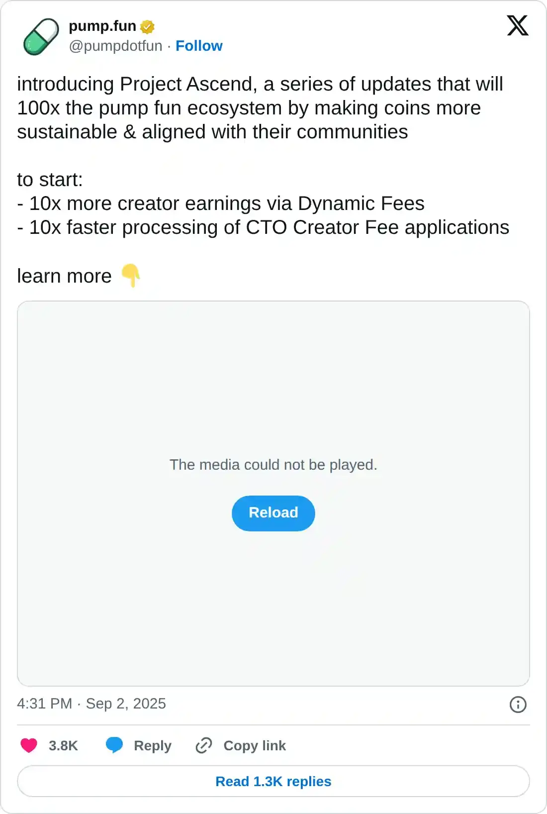 Pump.fun, la plataforma de lanzamiento de monedas meme basada en Solana, lanzó su nuevo modelo de tarifas dinámicas para impulsar la economía de creadores. El modelo reduce la tarifa para creadores en la plataforma al 0.05% desde el anterior 0.95% alto, siempre que el proyecto logre una capitalización de mercado de 98.240 SOL.