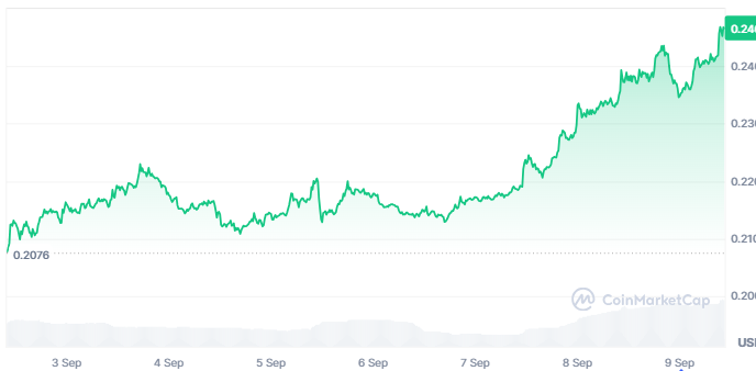 Después de que se conoció la noticia, la cotización de DOGE pasó de 0,23 a 0,24 dólares, lo que representa una subida de 4%, tal como se observa en el siguiente gráfico: