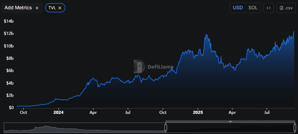 El ecosistema DeFi de Solana ha alcanzado un hito histórico: el valor total bloqueado (TVL) superó los $12.000 millones, estableciendo un nuevo récord en términos monetarios.