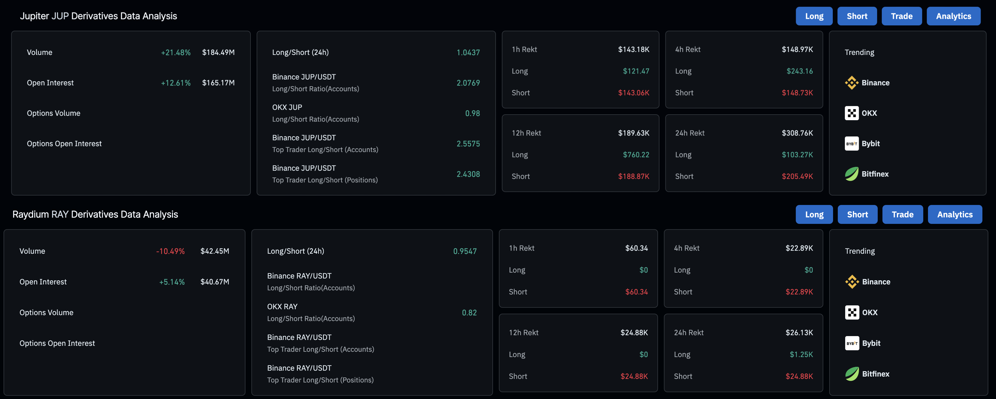 Derivados de Raydium y Jupiter. Fuente: Coinglass