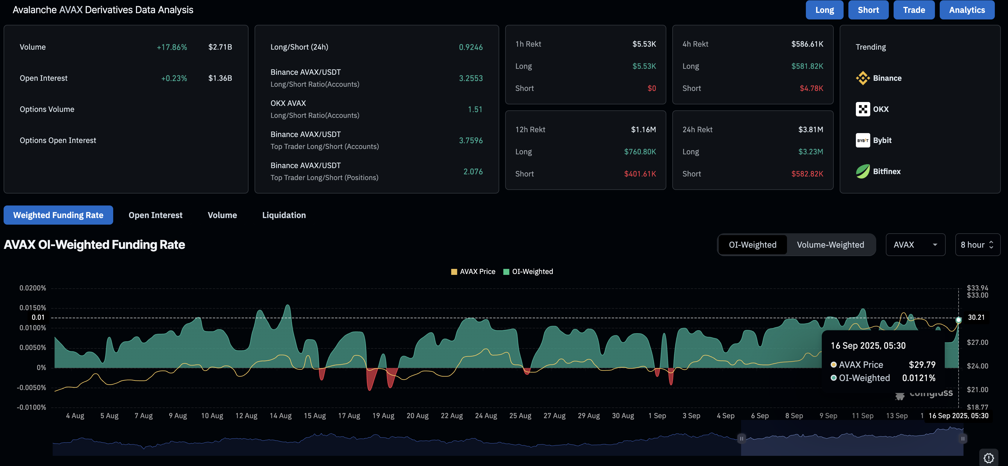 Aún así, los datos de CoinGlass muestran un ligero aumento en el Interés Abierto (OI) de AVAX, alcanzando 1.36 mil millones de dólares, lo que sugiere un aumento en los flujos de capital a medida que los inversores anticipan más ganancias.