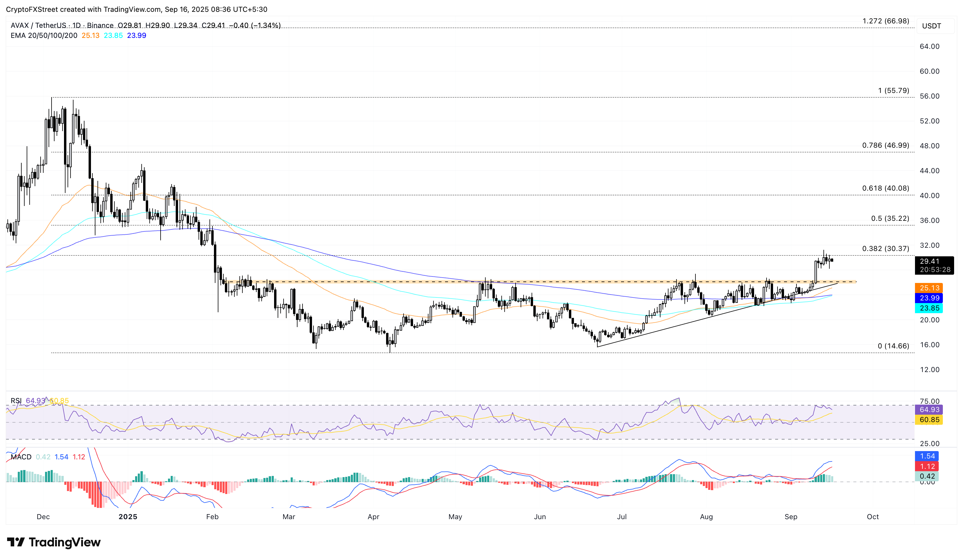Avalanche apunta a un quiebre en 30$ para extender ganancias