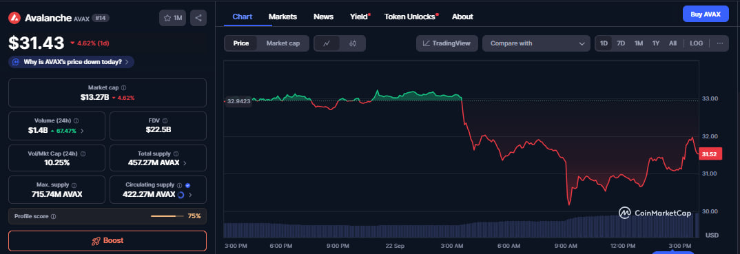 El token nativo de Avalanche mantuvo una perspectiva bajista hoy.