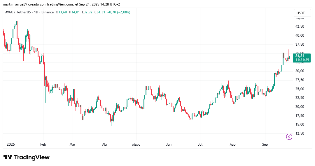 El precio de AVAX también reaccionó a la noticia y su precio acumula una subida semanal del 15%: