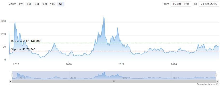 Si LTC se mantiene por encima de la zona de soporte mencionada, podría extender el repunte hacia la siguiente resistencia en 130 dólares.