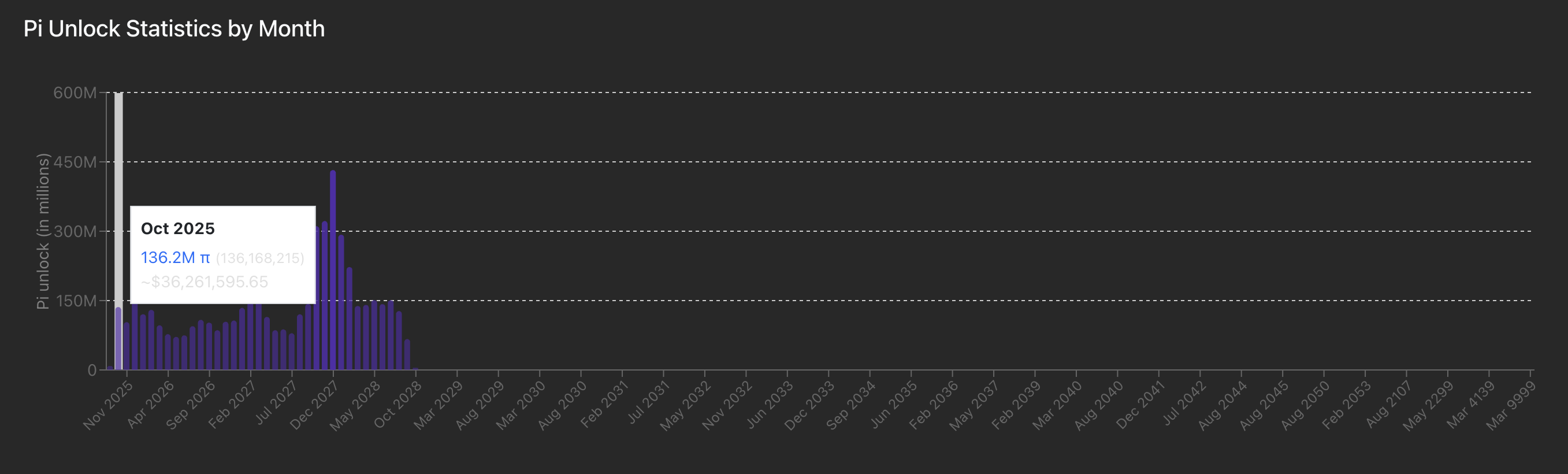 Los datos de PiScan revelan que 136 millones de tokens PI serán desbloqueados en octubre, lo que representa un poco más del 1% de la oferta en circulación. Este aumento en la oferta podría añadir presión de venta a medida que prevalece el sentimiento de aversión al riesgo.
