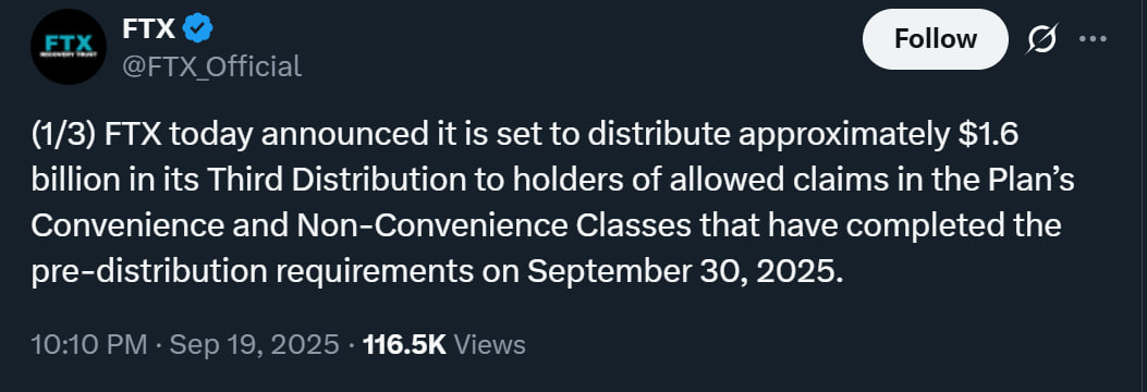 - Los acreedores de FTX recibirán USD 1.6 mil millones en reembolso mañana.