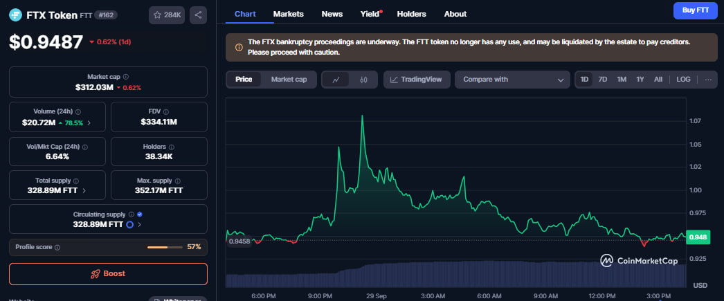 La altcoin no tiene ninguna utilidad en este momento. Ya no respaldado por un plataforma de trading en curso, FTT sobrevive a base de especulación.