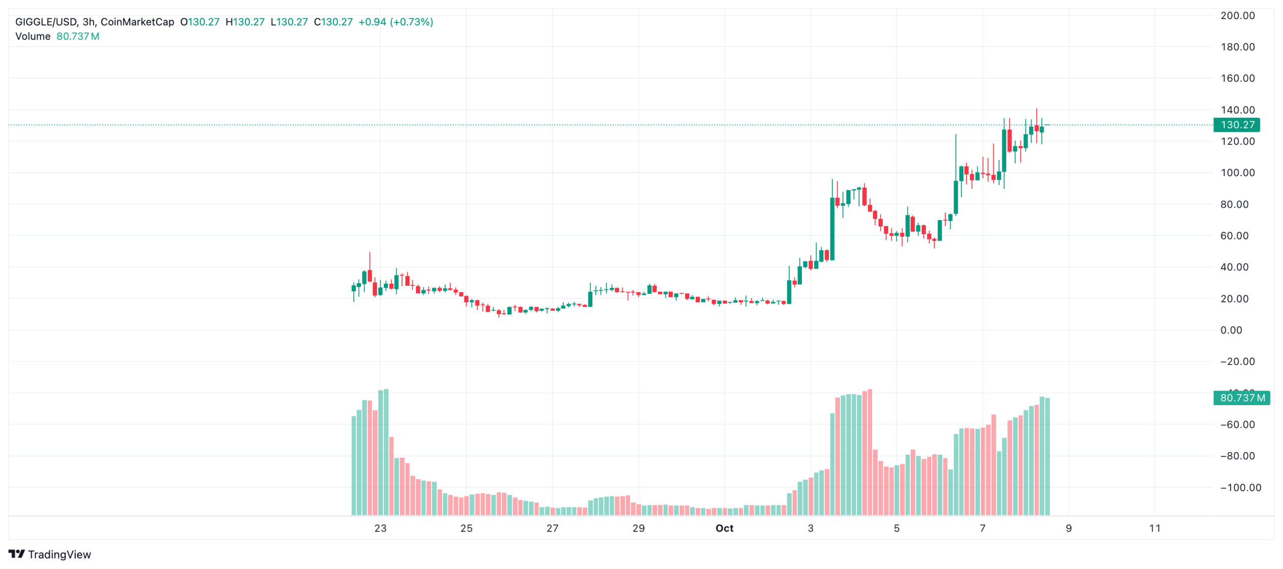 El interés en las memecoins dentro del ecosistema BNB se ha reavivado significativamente. Tras las publicaciones del ex CEO y cofundador de Binance, Changpeng Zhao, en su cuenta de redes sociales, memecoins como GIGGLE y 4 experimentaron aumentos récord. Este aumento llevó a cambios rápidos en las listas de tendencias en los intercambios descentralizados (DEXs), duplicando los volúmenes de negociación y haciendo que los precios subieran rápidamente. Específicamente, GIGGLE se disparó un 33.5% en las últimas 24 horas, alcanzando un pico de $140 y registrando un aumento semanal del 717%. Por otro lado, el token 4 se apreció un 19% diario y un 349% semanal.