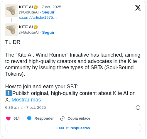 Esta iniciativa recompensa a los creadores consistentes en X (anteriormente Twitter) con un token no transferible por publicar contenido de alta calidad sobre Kite AI.