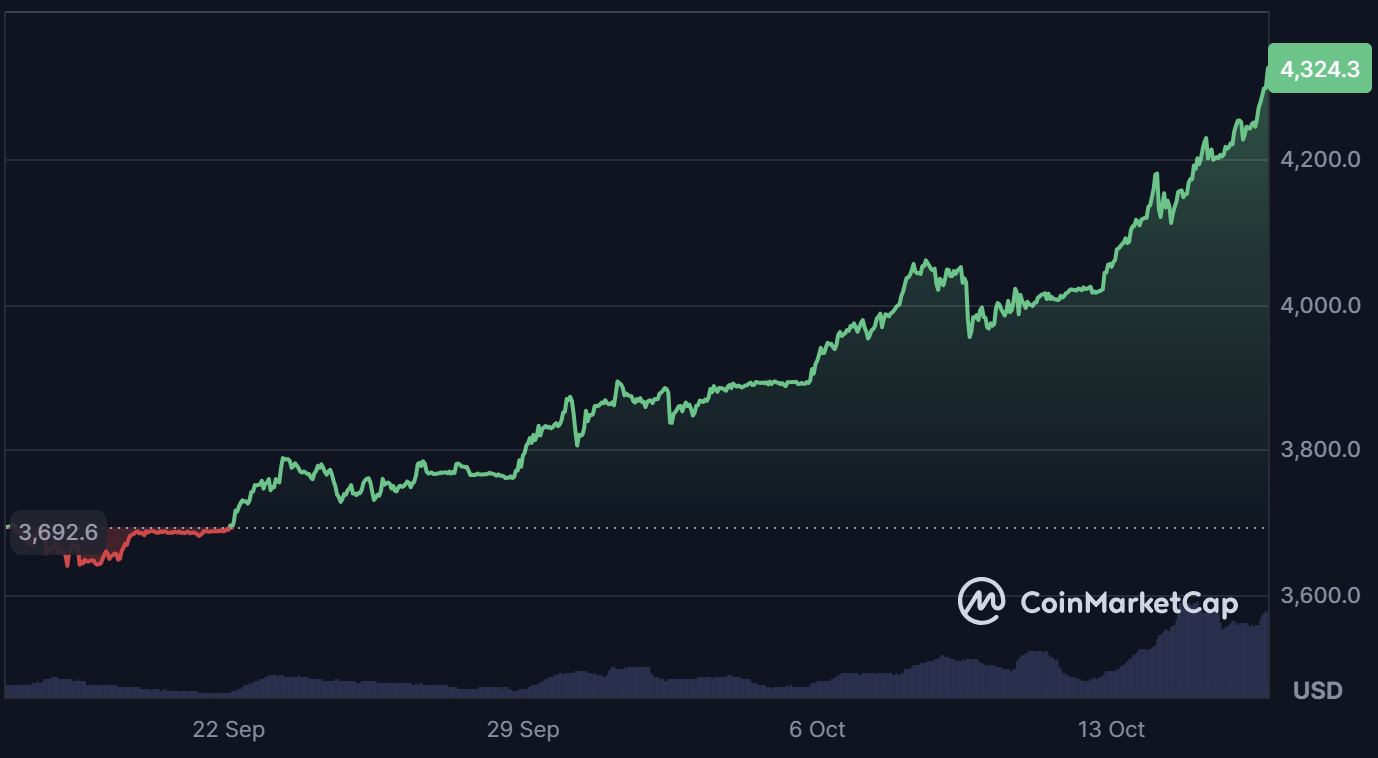 El cierre de Wall Street de este jueves deja un claro protagonista: el oro. El metal dorado marcó un nuevo máximo histórico al alcanzar los $4.323 por onza, impulsando también a Tether Gold (XAUT) a su propio ATH, reflejando cómo los activos refugio vuelven a dominar en medio de la incertidumbre económica global.