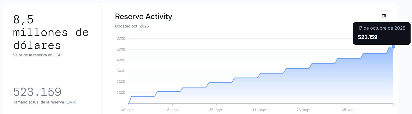 La organización Chainlink, detrás de la red de oráculos descentralizados homónima, ha acumulado 523.158 LINK en su reserva, valorados en 8,5 millones de dólares. Este registro se alcanza apenas dos meses después de la implementación de la denominada Chainlink Reserve.