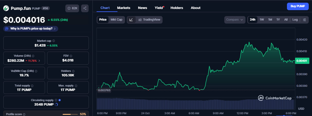 El token nativo de Pump.fun exhibió un sesgo alcista en medio de las actualizaciones de adquisición.