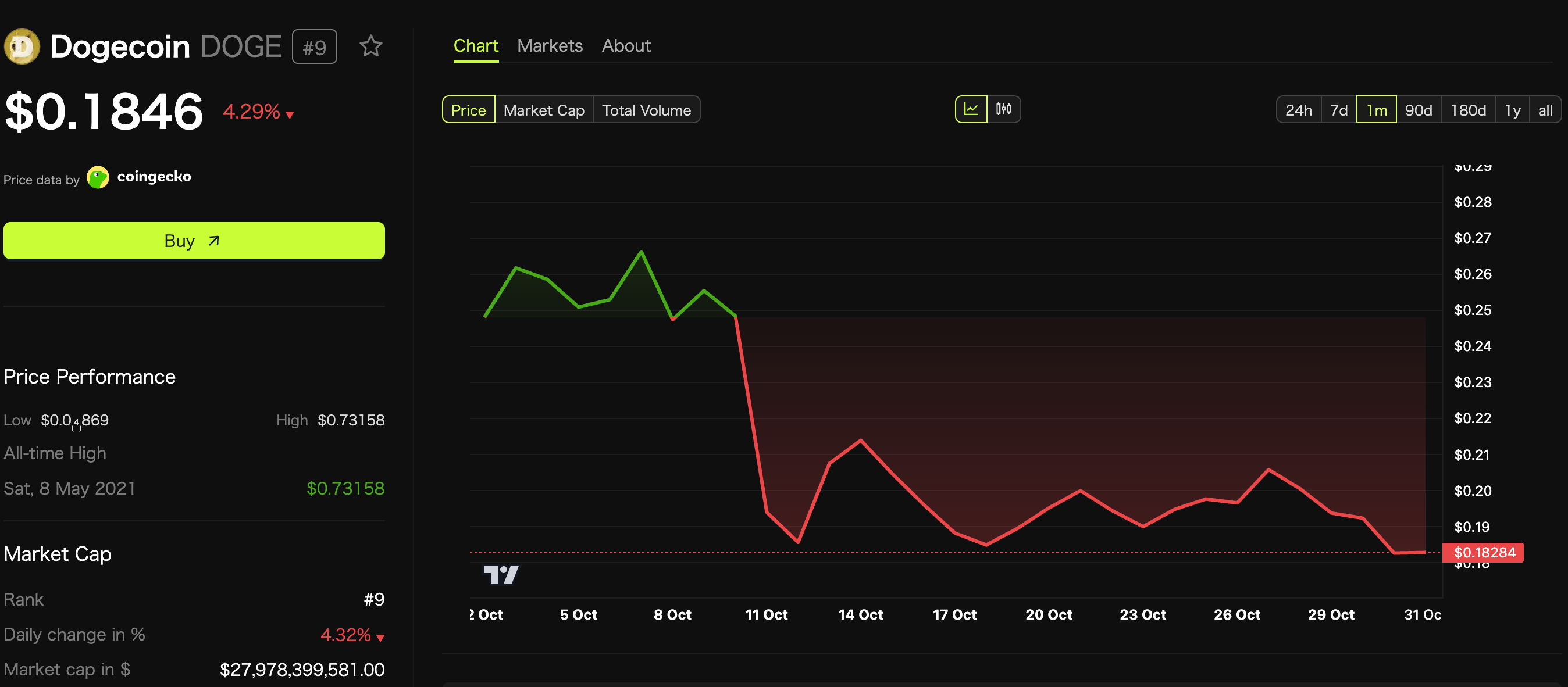 Mientras que DOGE está cerca de 0.184 dólares, con descensos leves desde niveles previos, los analistas señalan que las tendencias más amplias del mercado, como la rotación de altcoins, los flujos de liquidez y el sentimiento macroeconómico, están influyendo más que este anuncio por sí solo.