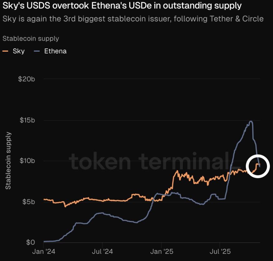 Sky Dollar (USDS), la stablecoin del protocolo de finanzas descentralizadas (DeFi) Sky Ecosystem, supera al suministro circulante de USDe, la moneda estable de Ethena.
