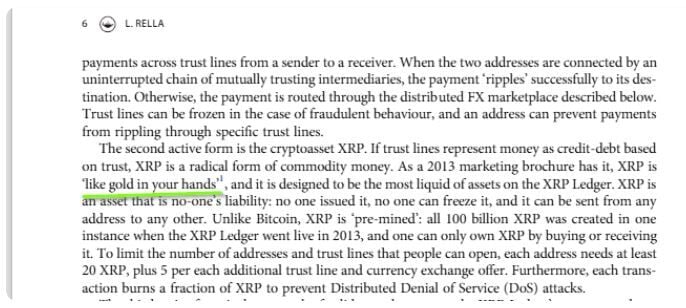 Previo al fallo judicial del 2023 contra la Comisión de Bolsa y Valores de EE.UU. o SEC que determinó que Ripple no era un valor, Ludovico Rella publicaba hace cinco años un trabajo académico de la Universidad de Durham en el Journal of Cultural Economy donde señalaba que XRP se comporta como un activo digital con características propias de las materias primas según Christian Encila en News BTC.