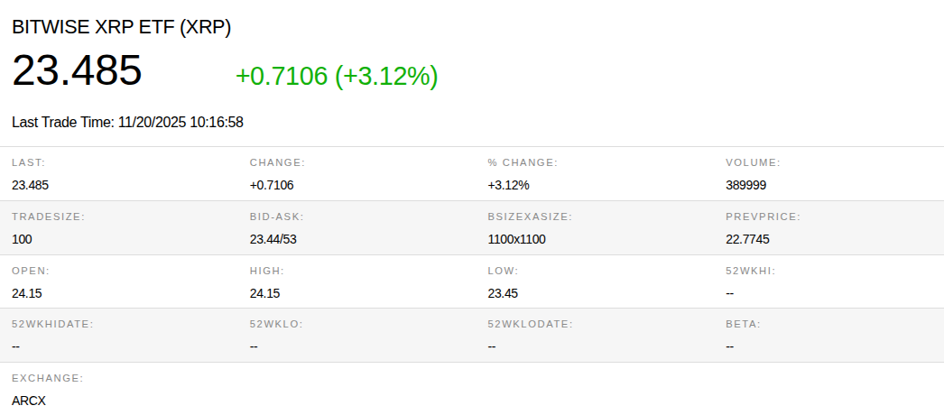 El Bitwise XRP ETF marca un nuevo capítulo para la exposición institucional a este activo, al debutar en la Bolsa de Nueva York con un producto spot regulado. Este lanzamiento sitúa al fondo entre las principales ofertas vinculadas a XRP en Estados Unidos y refuerza el interés que surgió tras el cierre del conflicto legal entre Ripple y la SEC.