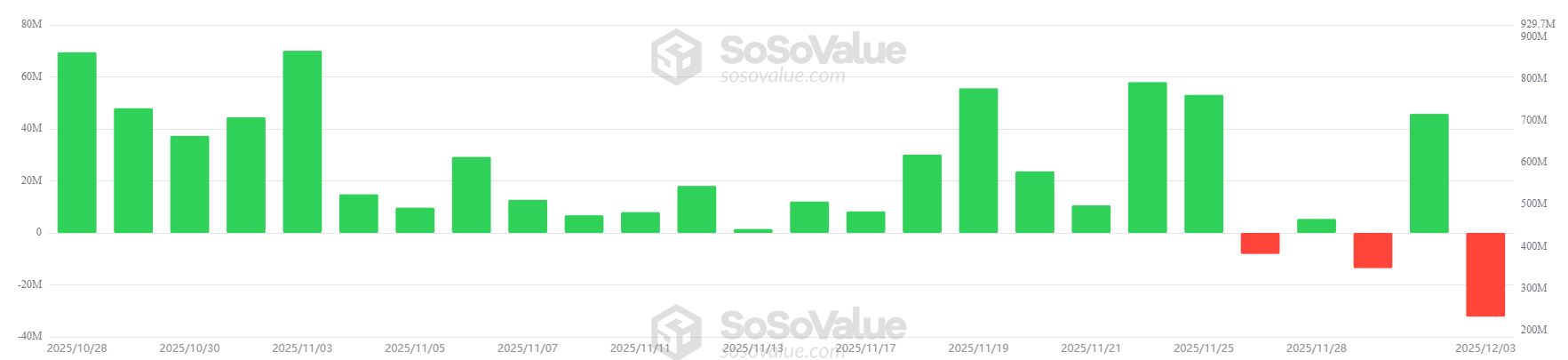 Ayer, 3 de diciembre, debutó el fondo cotizado en bolsa (ETF) al contado de solana (SOL) gestionado por Franklin Templeton, el gigante financiero que administra 1,6 billones de dólares en activos. El estreno fue discreto, ya que el ETF no registró entradas ni salidas netas de capital en su primera jornada.