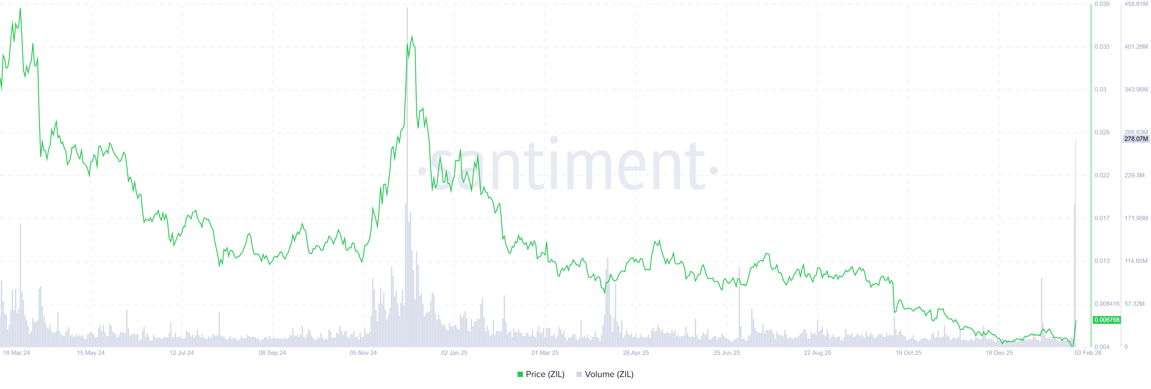 Los datos de Santiment indican que el volumen de operaciones del ecosistema de Zilliqa (el volumen de operaciones agregado generado por todas las aplicaciones de intercambio en la cadena) alcanzó los 278.07 millones de dólares el martes, el volumen más alto desde diciembre de 2024. Este aumento de volumen indica un aumento en el interés de los traders y la liquidez en Zilliqa, mejorando su perspectiva alcista.