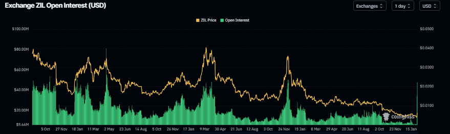 Los datos de CoinGlass muestran que el interés abierto de futuros en Zilliqa en los intercambios alcanzó los 47.76 millones de dólares el martes, frente a los 5.72 millones de dólares el lunes, los niveles más altos desde el 9 de diciembre de 2024. Un interés abierto creciente representa dinero nuevo o adicional ingresando al mercado y nuevas compras, lo que podría alimentar el actual repunte del precio de $ZIL.