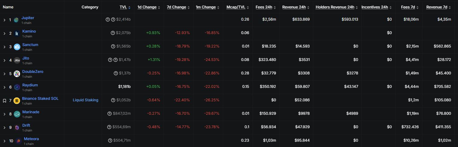 Este dato es relevante porque el TVL mide cuánto capital permanece depositado en los protocolos y permite diferenciar entre picos de actividad especulativa y participación más estable. En el caso de Solana, el ranking de las principales aplicaciones muestra que, pese a la volatilidad del mercado, el capital continúa concentrándose en un grupo reducido de plataformas.
