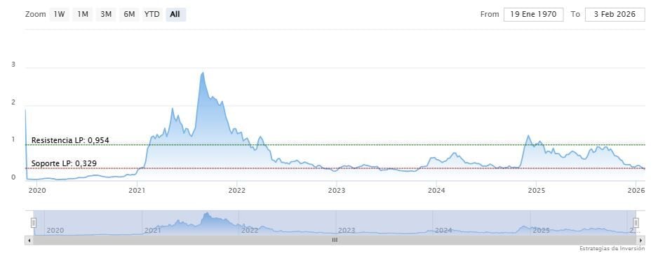 El precio ha caído por debajo de los soportes de mediano y largo plazo. Mientras, los indicadores de Ei se muestran mixtos.