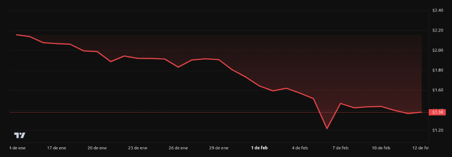 Al momento de la publicación, $XRP cotiza en 1.39 dólares tras un leve aumento del 2% en las últimas 24 horas. Sin embargo, acumula una caída del 32% en el último mes y del 61% desde su máximo histórico.