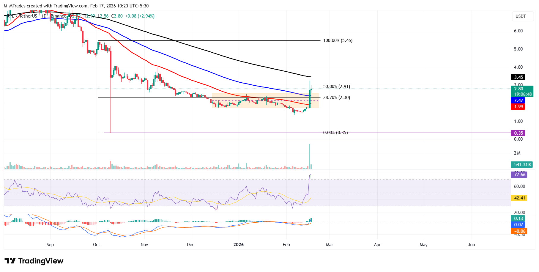 Si $RPL continúa su tendencia alcista, podría extender el repunte hacia la EMA de 200 días en 3.45$.
