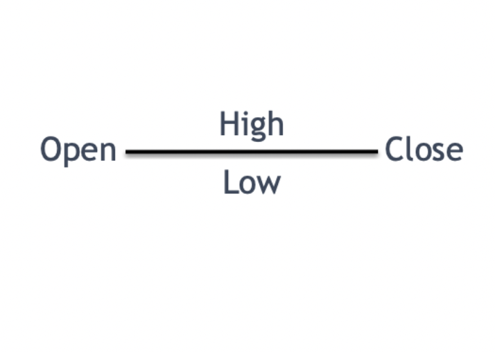 El Doji de cuatro precios es un patrón que rara vez aparece en un gráfico de velas, excepto en condiciones de bajo volumen o períodos muy cortos. En particular, se parece a un signo menos, lo que sugiere que los cuatro indicadores de precios (apertura, cierre, máximo y mínimo) están en el mismo nivel durante un período determinado.