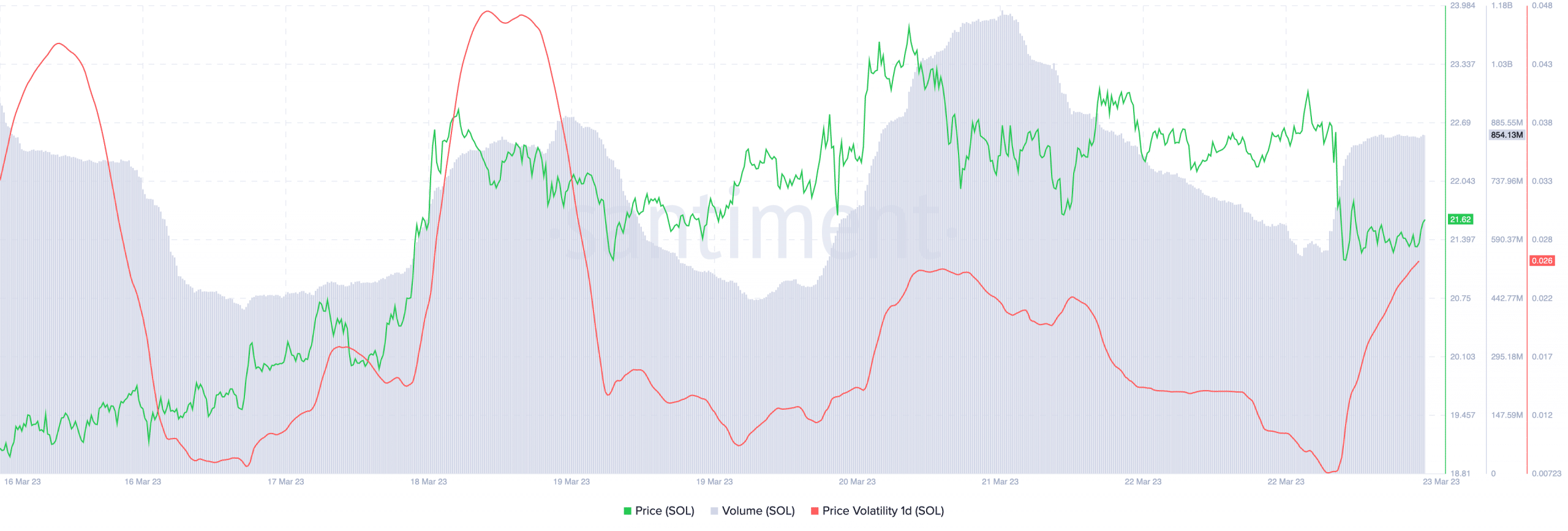 SOL ha estado bajo presión recientemente debido a una caída en sus precios en los últimos días, que coincidió con una disminución en su volumen de negociación y un aumento en la volatilidad. Esta mayor volatilidad podría hacer que los inversores cautelosos duden en comprar SOL en el futuro.